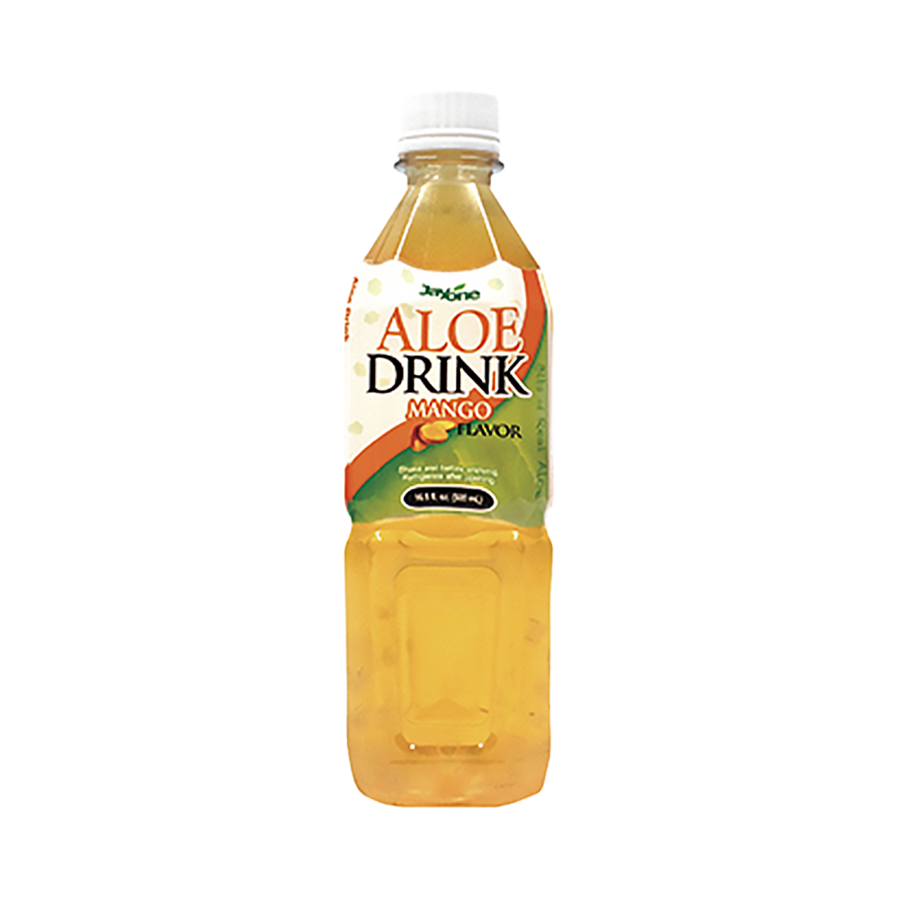 Water, Aloe Vera Juice, Aloe Vera Pulp, Sugar, Mango Juice, Citric Acid, Calcium Lactate, Sodium Citrate, Artificial Mango Flavor, Gellan Gum, Ascorbic Acid, Beta-Carotene(As color additive).