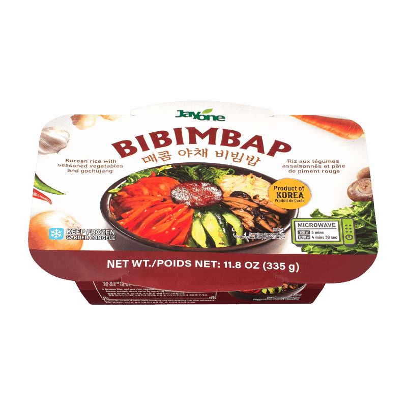 Seasoned Rice(Rice, Salt, Sesame Oil), Seasoned Red Chili Pepper Paste(Red Chili Paste, Soy Sauce, Glucose, Garlic, Onion), Spinach, Soybean Sprouts, Carrot, Onion, Shiitake Mushroom